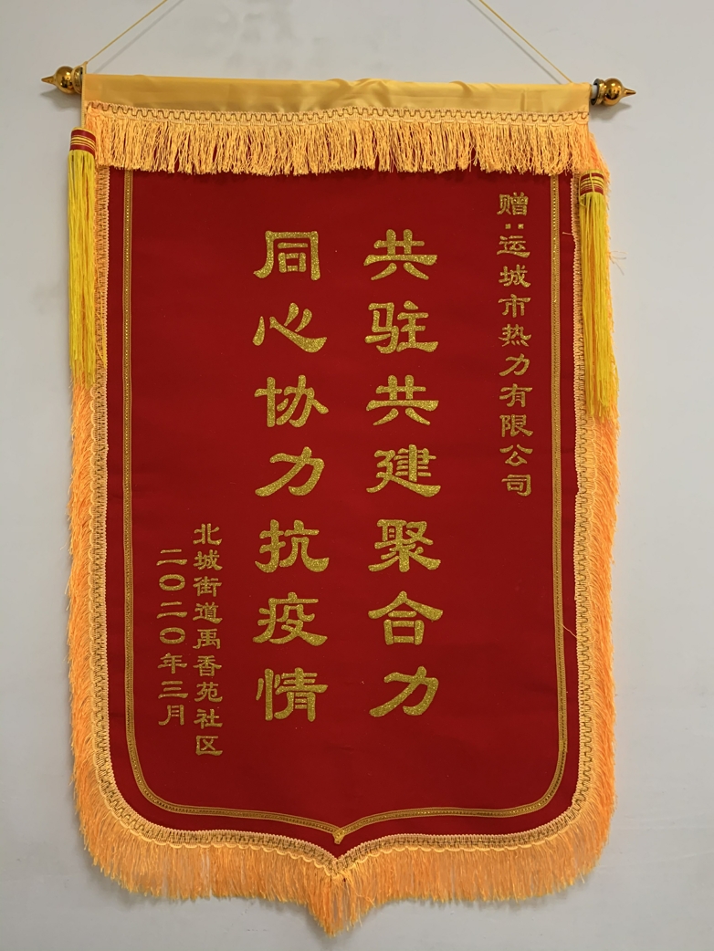 3月18日上午,禹香苑社區全體工作人員在周俊紅主任的帶領下,送來“共駐共建聚合力、同心協力抗疫情”的一面錦旗,對我公司疫情期間志愿堅守社區一線抗疫行動表示感謝。