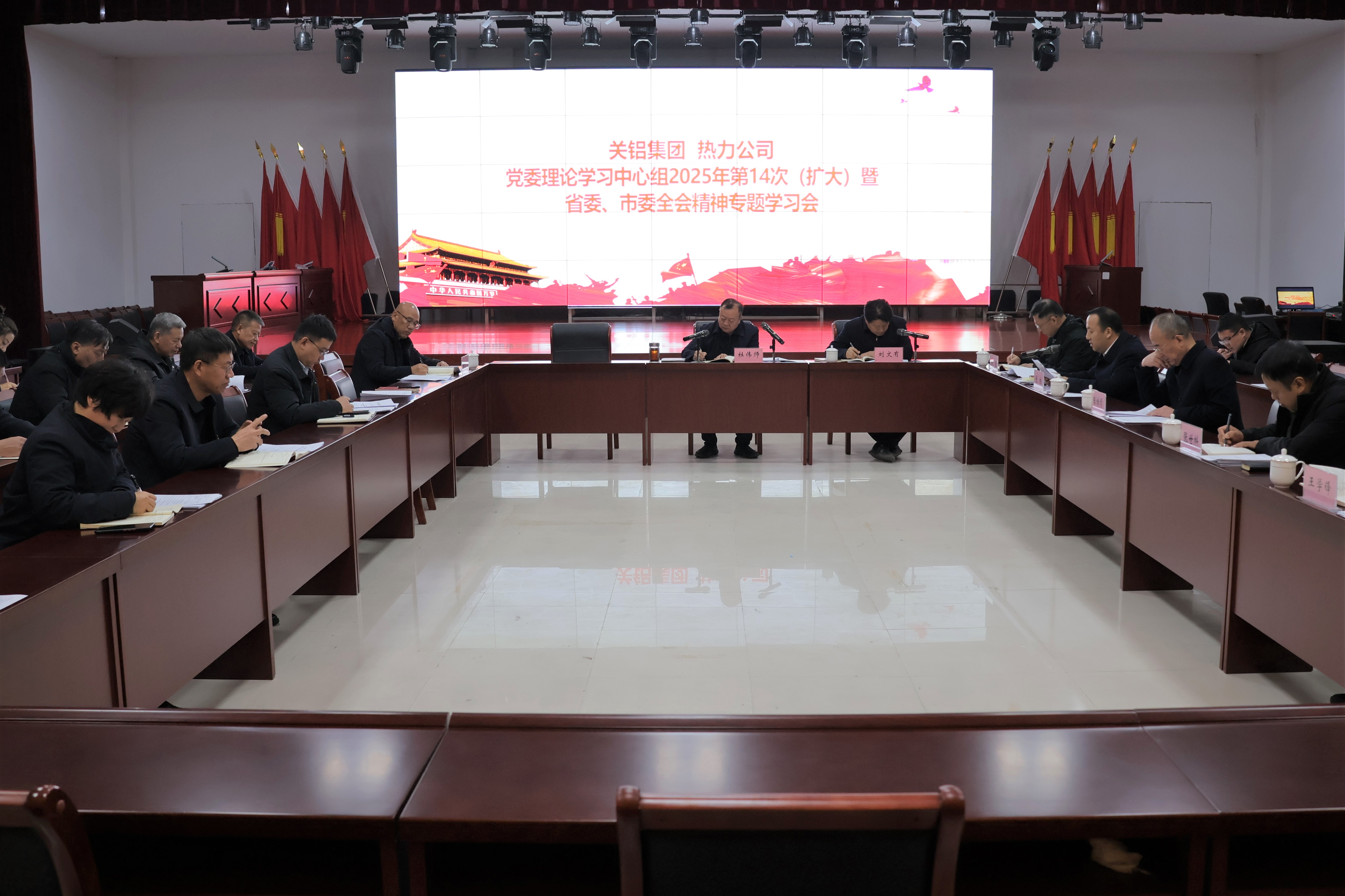 12月26日上午,公司聯合關鋁集團召開黨委理論學習中心組2025年第14次(擴大)會暨省委、市委全會精神專題學習會。會議由公司黨委書記、董事長杜偉師主持,關鋁集團、熱力公司領導班子成員,各黨支部書記、中層正職及部門負責人參加會議。